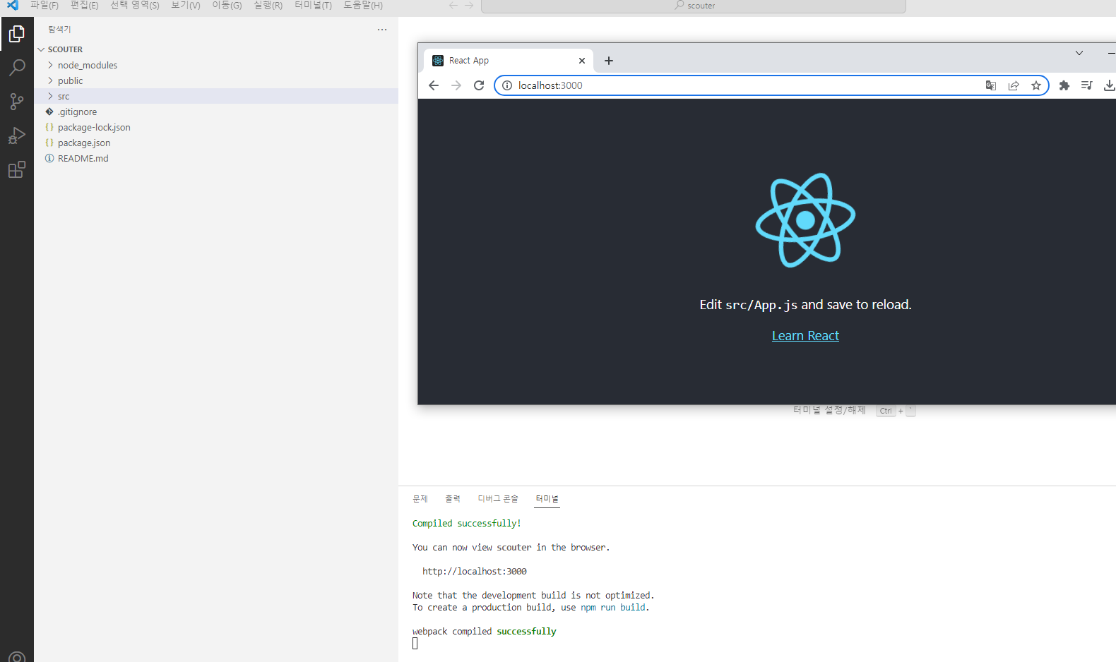 터미널에 npm start 입력하여 프로젝트를 구동해서 확인할 수 있다 😋