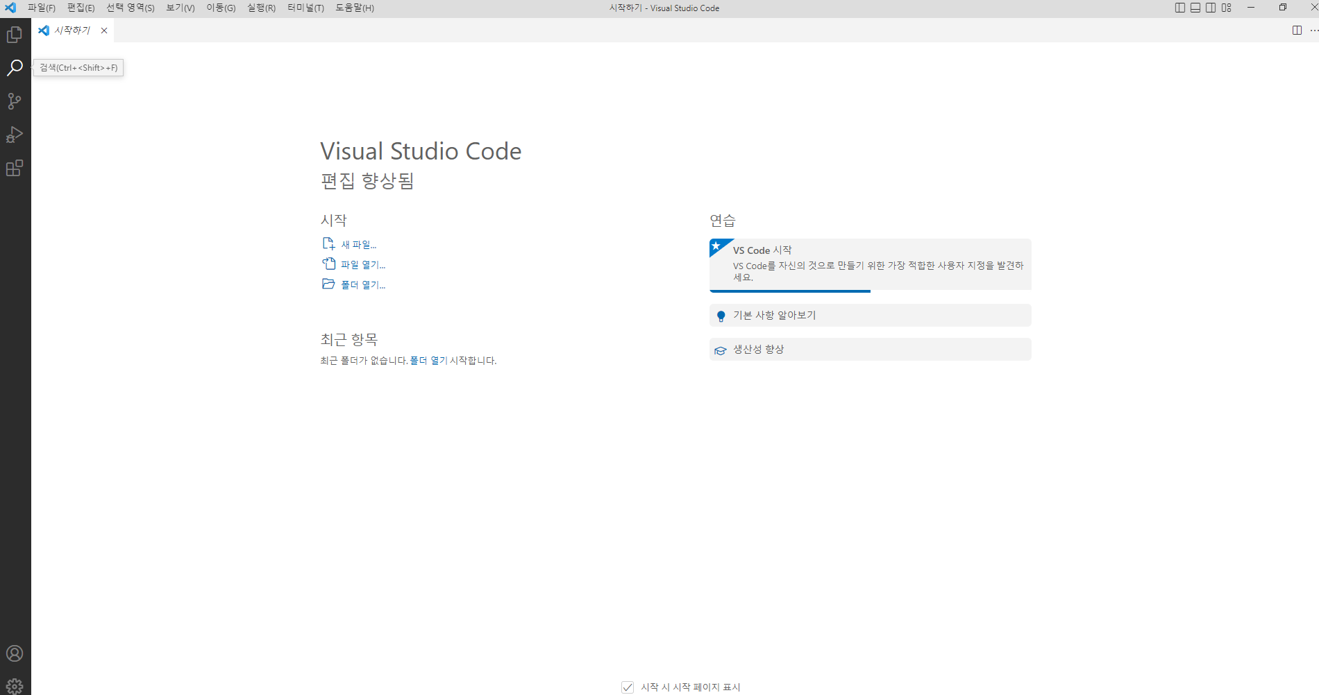 폴더 열기 또는 좌측 상단 폴더 열기( Ctrl + K + O)